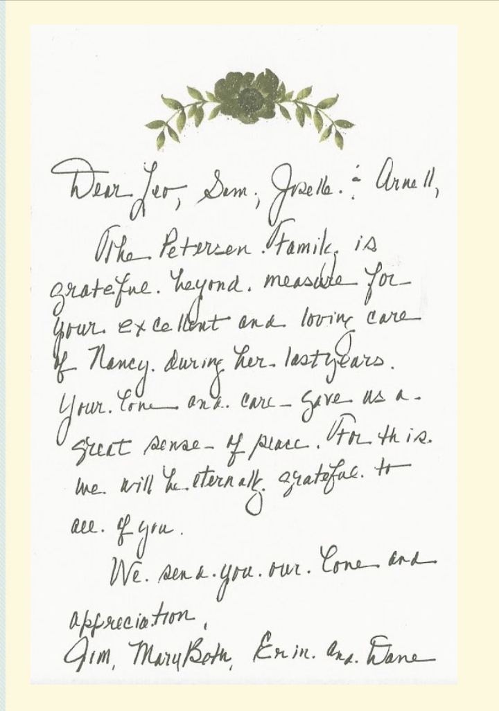 When she finally passed the pain of losing her was lessened by the caring of Leo, the staff and the other residents.Thank you Leo for all you did and continue to do for families in need.